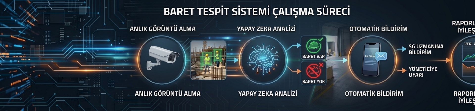 Hareketli ve tehlikeli çalışma alanlarında, personelin baret kullanımını anlık izleyerek baş yaralanmaları riskini minimuma indiriyoruz.